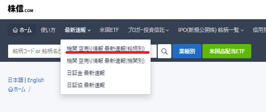 ■メニューの中から「機関 空売り情報 最新速報(銘柄別)」を選びます。