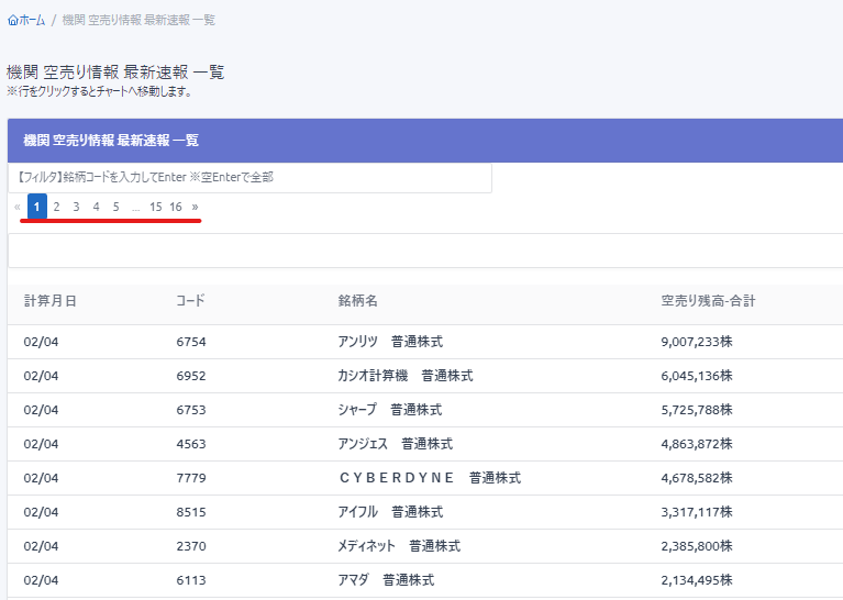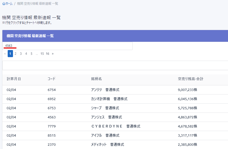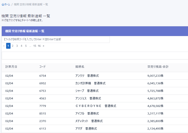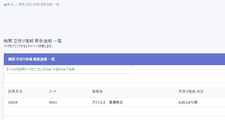 銘柄別 最新の機関空売り合計を見る