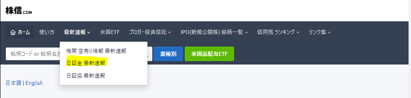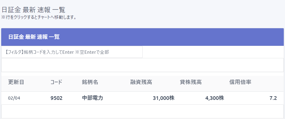 ■銘柄コードから検索することもできます。(銘柄コード+Enter)