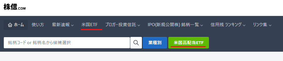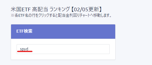 ■ETF検索入力により指定の銘柄を絞ることができます。(例:SPYD)