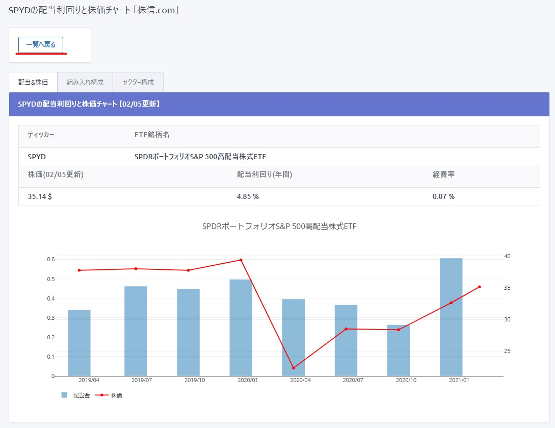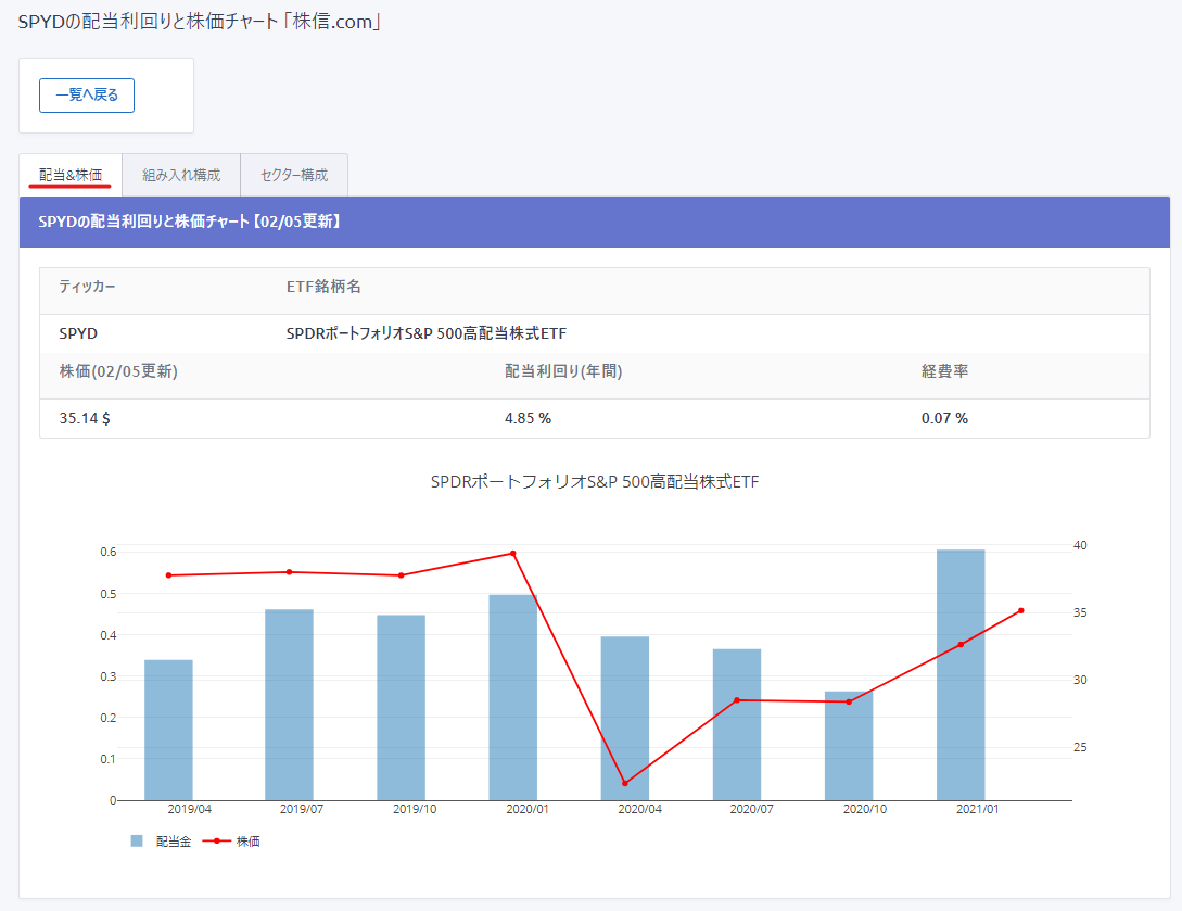 ■銘柄の情報が表示されます。(例:SPYD)