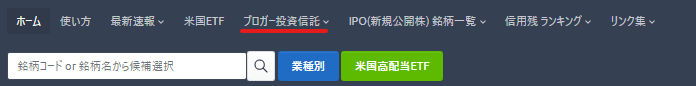 ■メニューの中から「ブロガー投資信託」を選びます。※年代別に選出したページがあります。