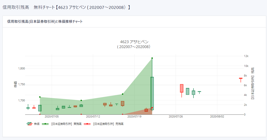 ③気になる銘柄の行をクリックするとチャート画面へ遷移します。(例:4623 アサヒペンをクリック)
