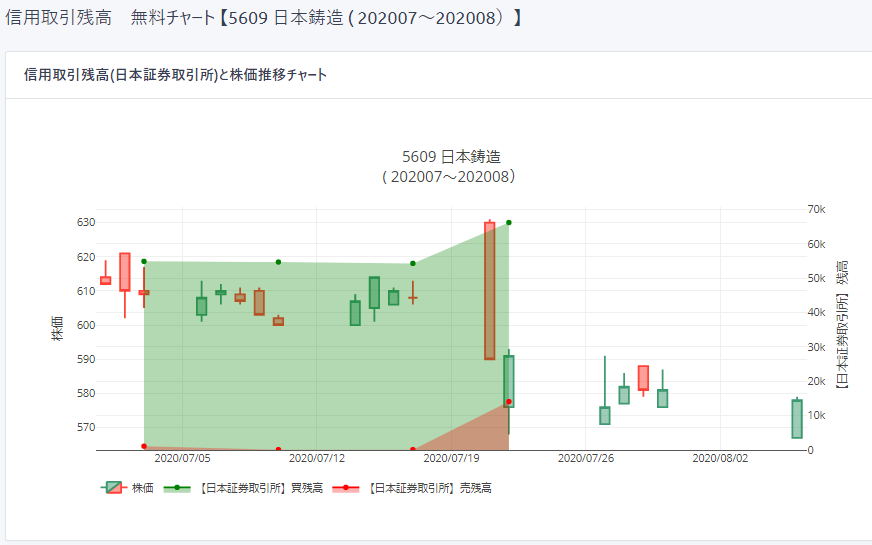③気になる銘柄の行をクリックするとチャート画面へ遷移します。(例:5609 日本鋳造をクリック)